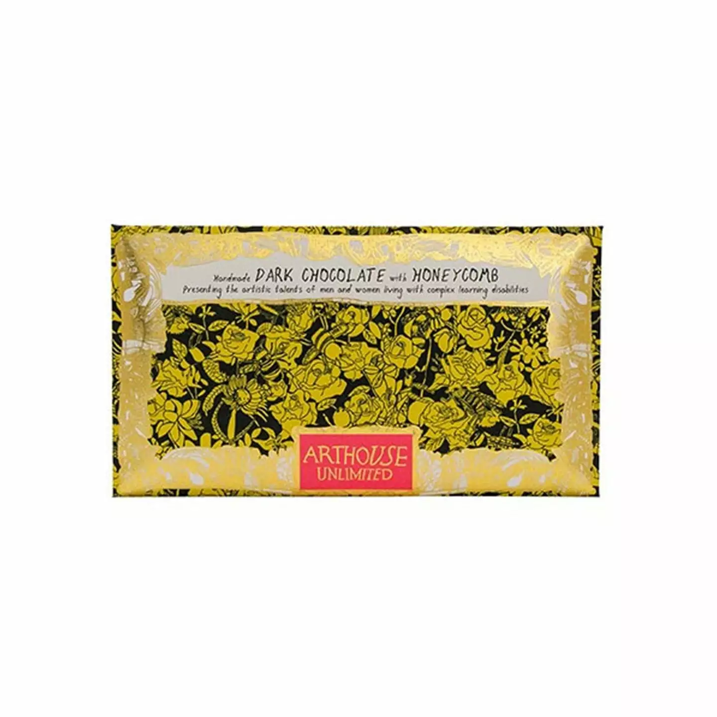 An indulgent dark chocolate bar with delicious honeycomb pieces.
