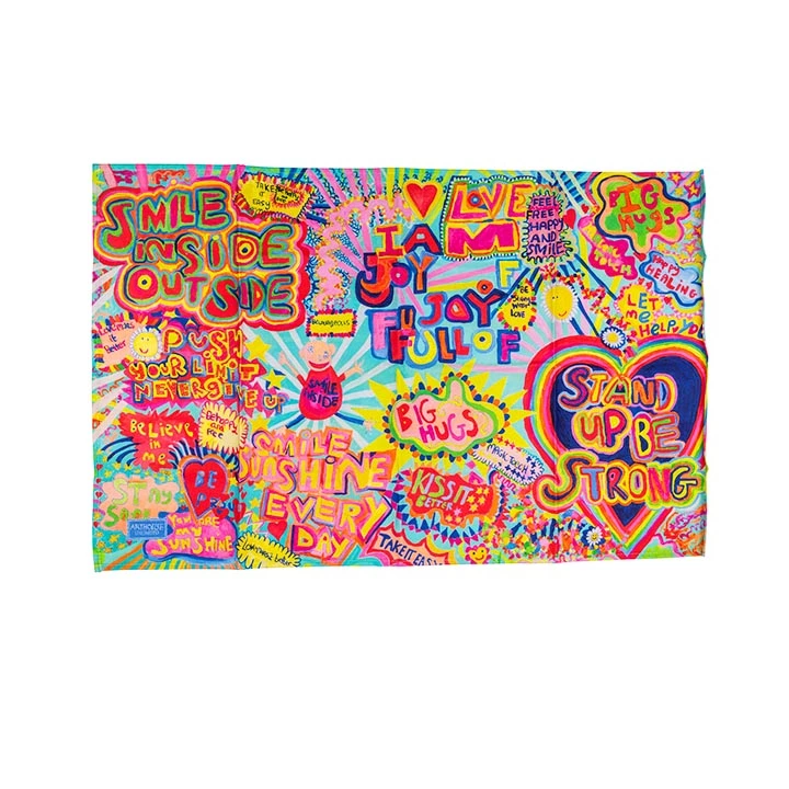The ‘Full of Joy design is the incredible collaborative work of several artists in the studio over a number of week. This design includes positive messages and affirmations from the artists to uplift and inspire.