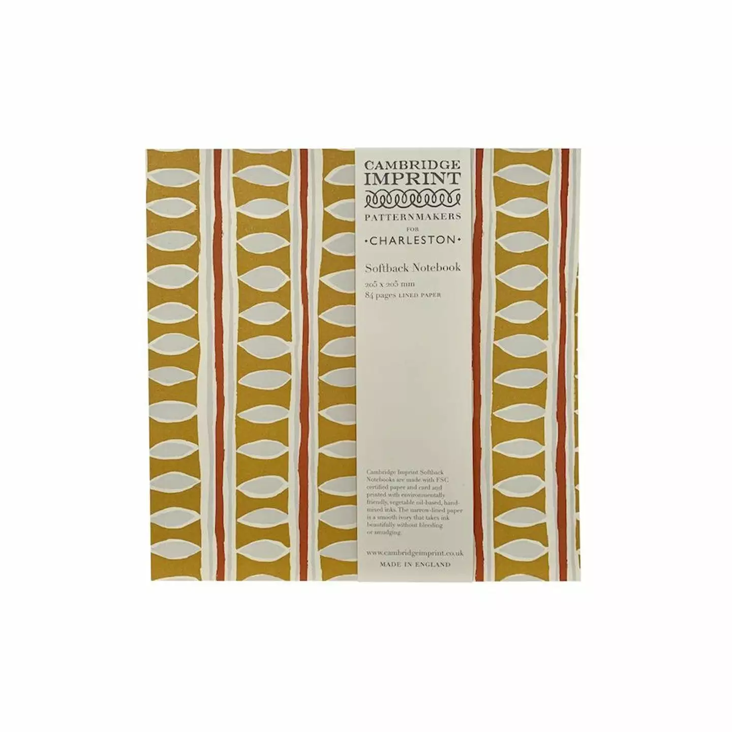 This square exercise book contains 84 pages of smooth cream paper with an elegant narrow-spaced line. There is no label or branding on the cover of patterned card.