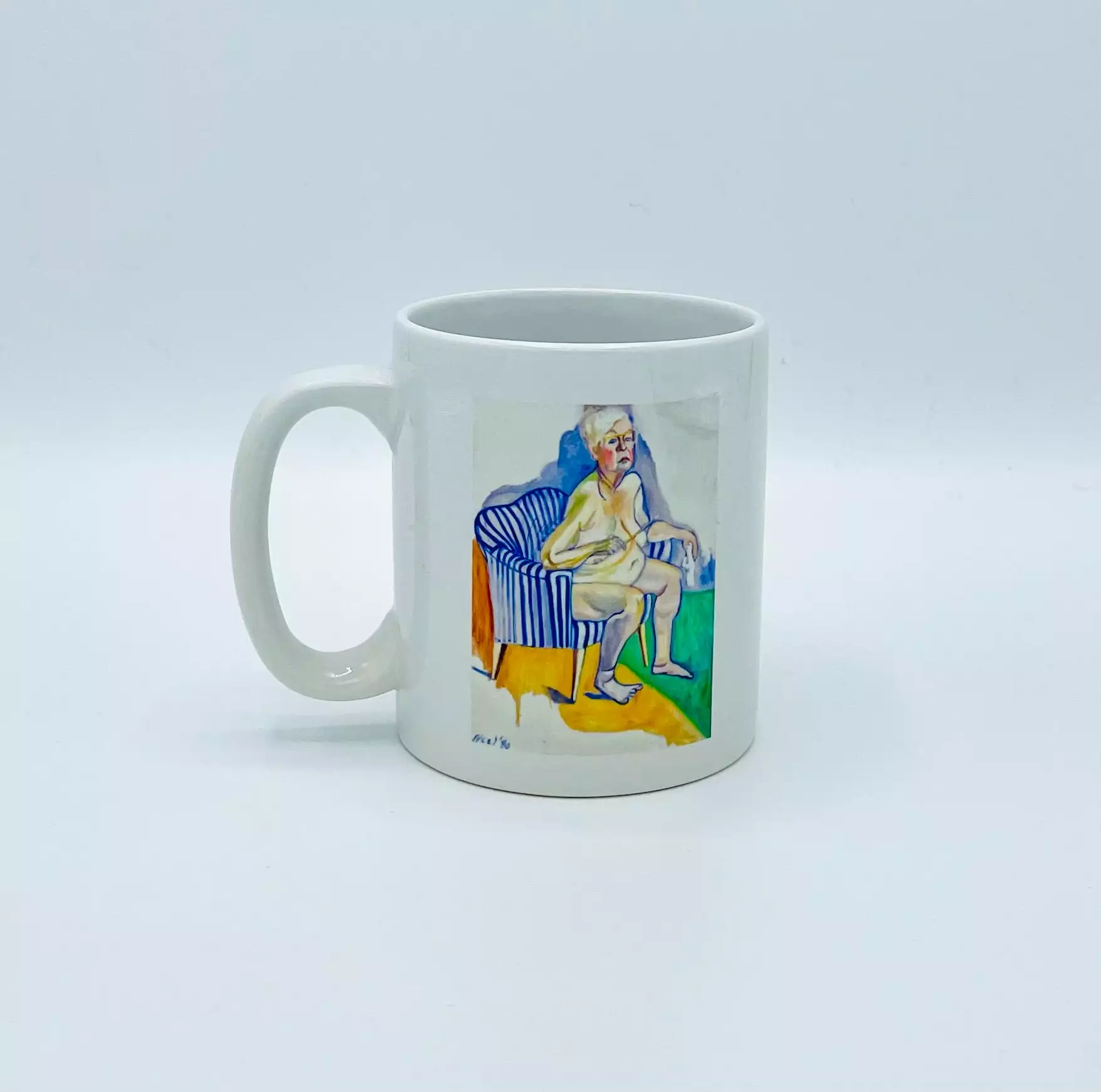 Ceramic mug featuring a reproduction of Alice Neel’s Self-Portrait painted at 80 years of age (1980).