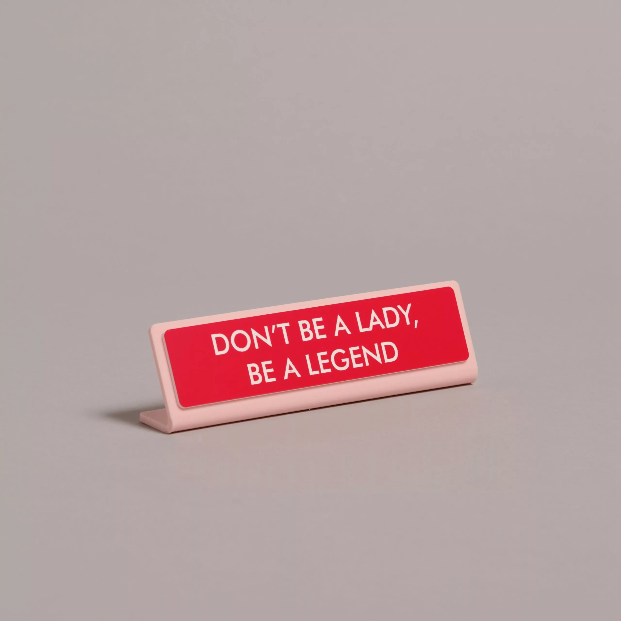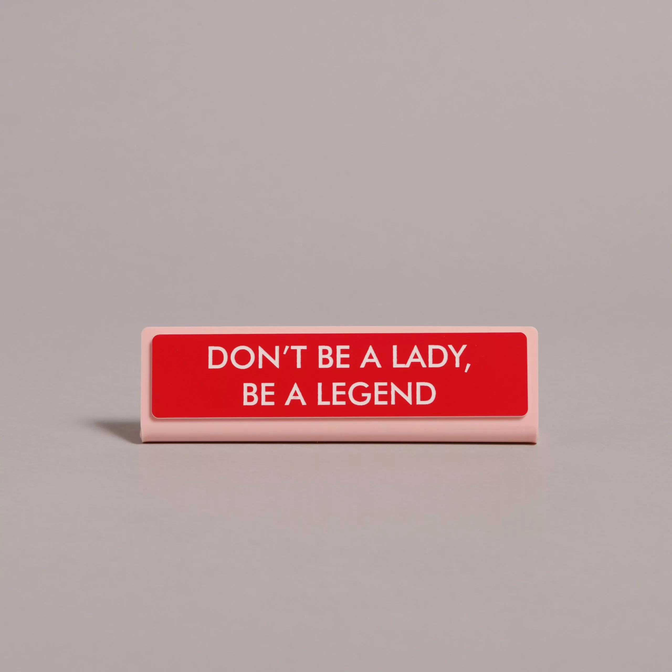 ‘Don’t be a lady, be a legend’ engraved onto a red plate with baby pink acrylic surround. Handmade in the UK.