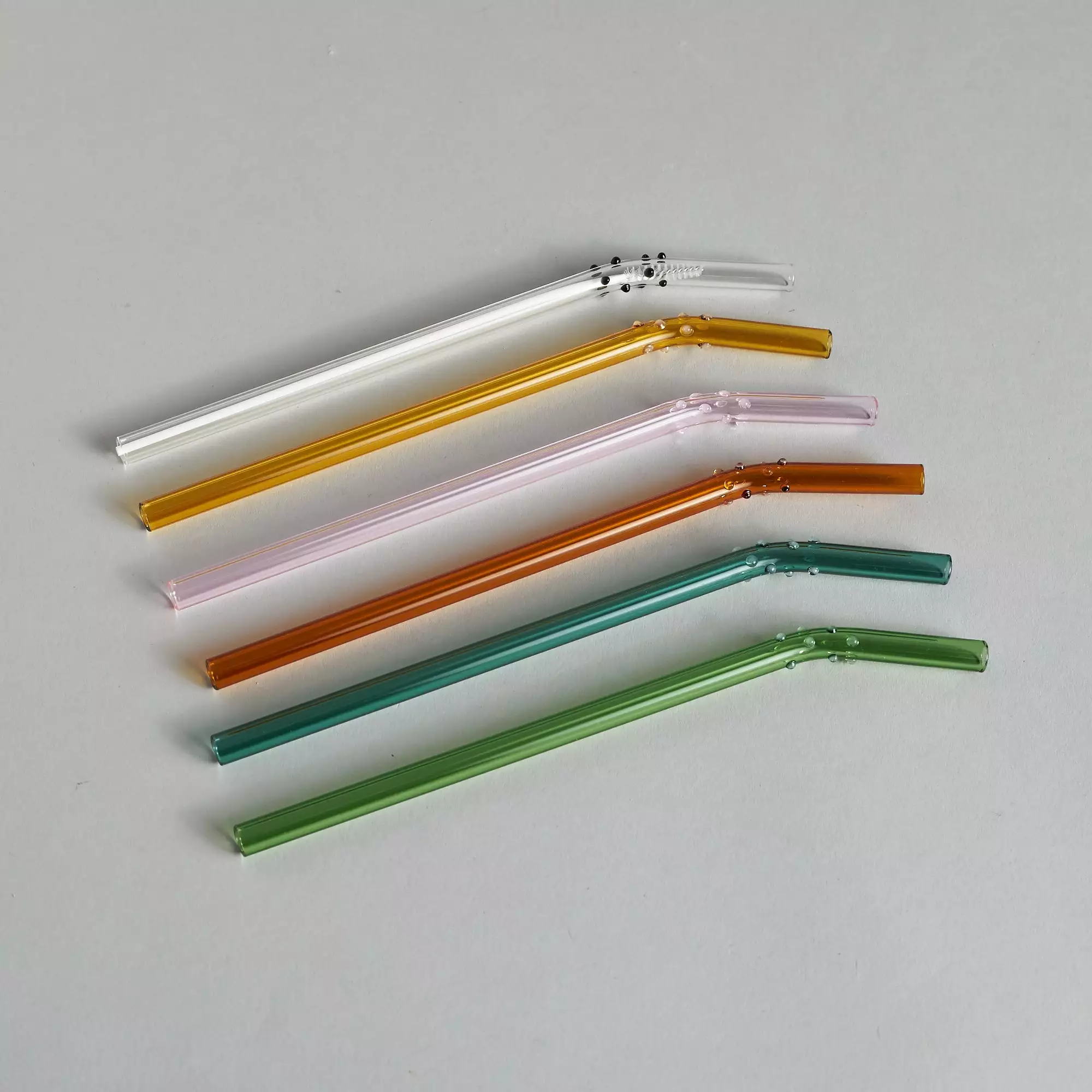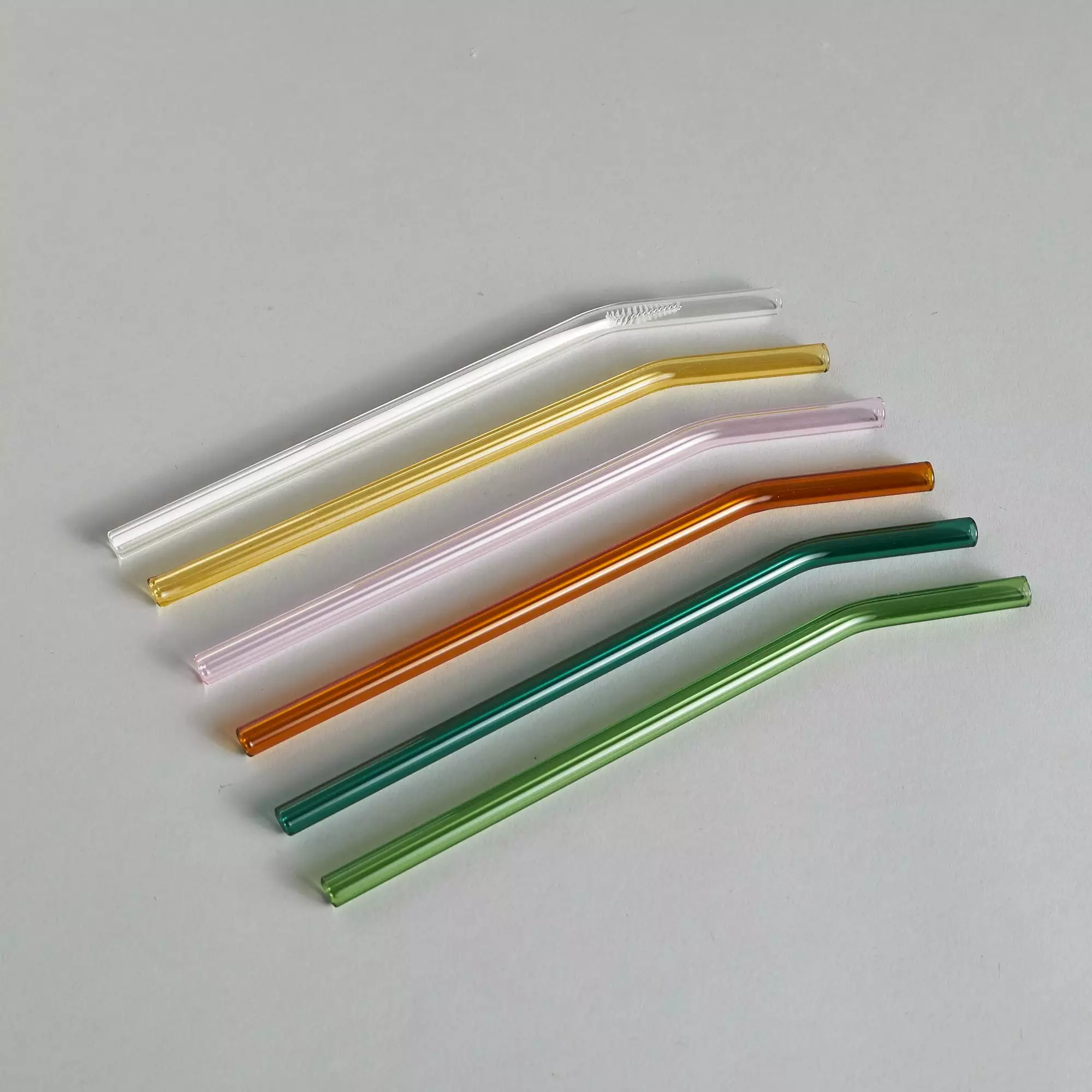 Made from borosilicate glass, this set of six bent straws arrive in an assortment of bright colours with a convenient cleaning brush. Use with hot or cold drinks.