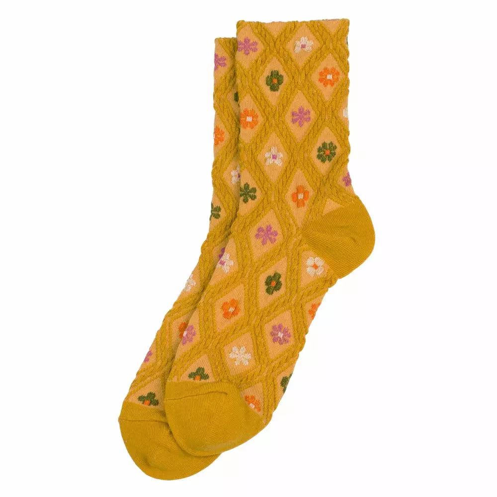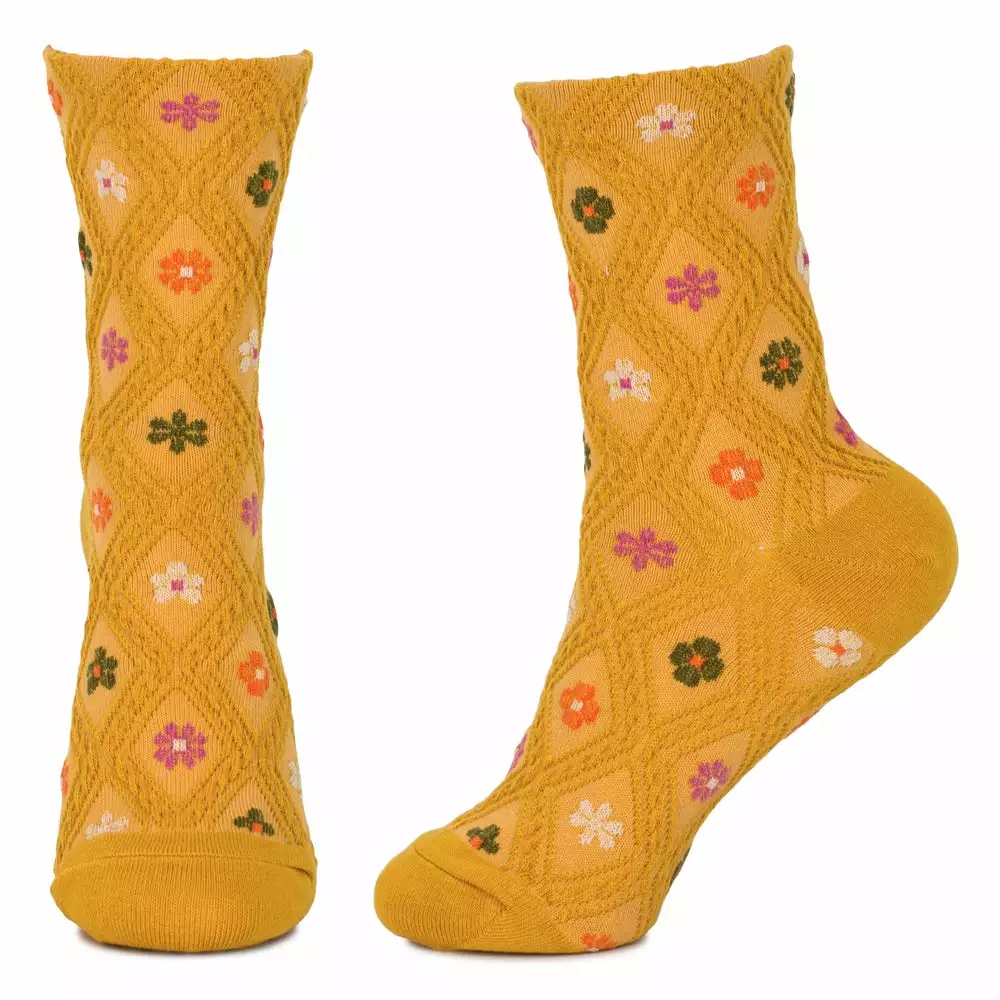 Add a stylish twist to your sock game with these unique embossed texture ankle socks in a bright on trend mustard yellow