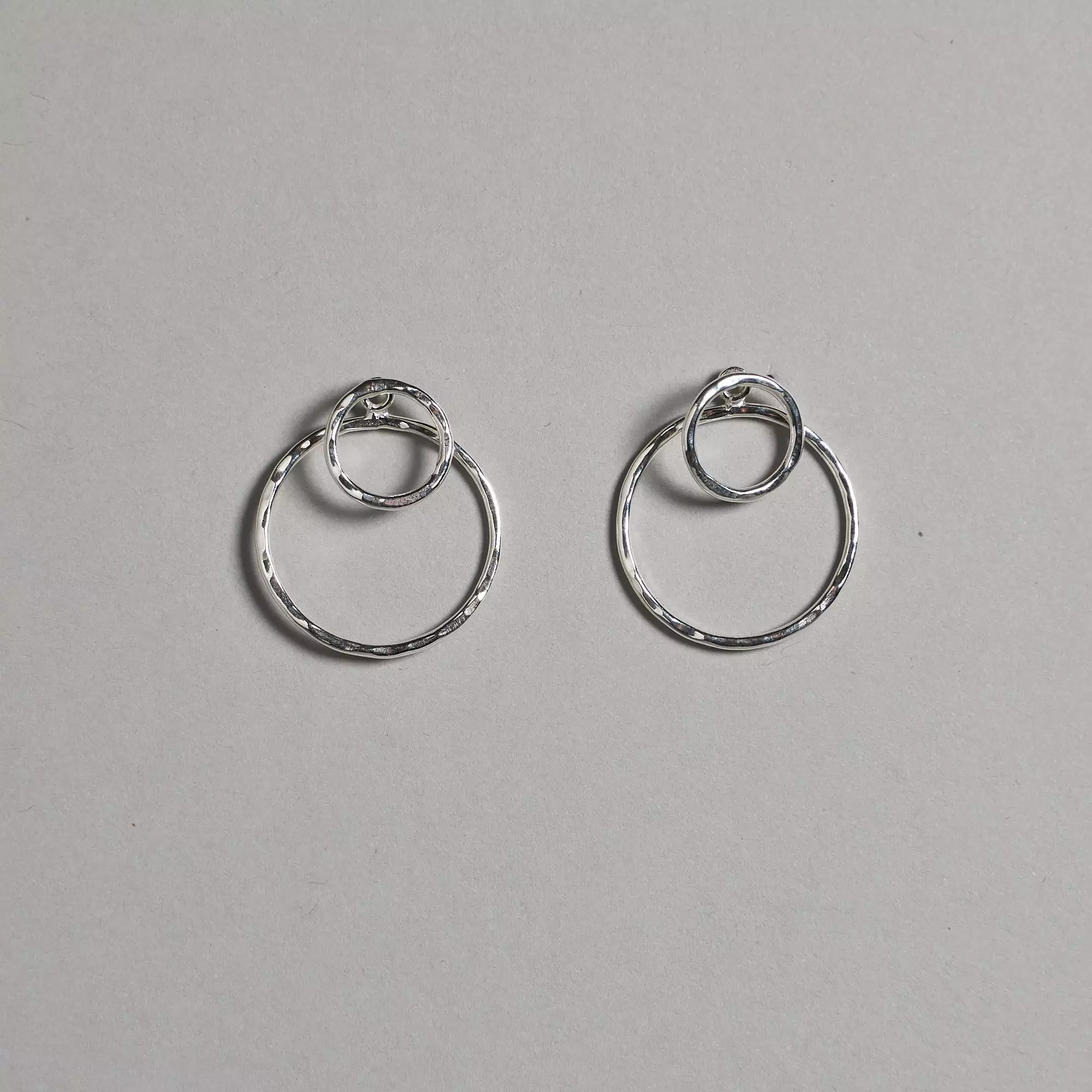 Sterling silver circular Hoop ear jackets slightly hammered for a more distinct and daring look.