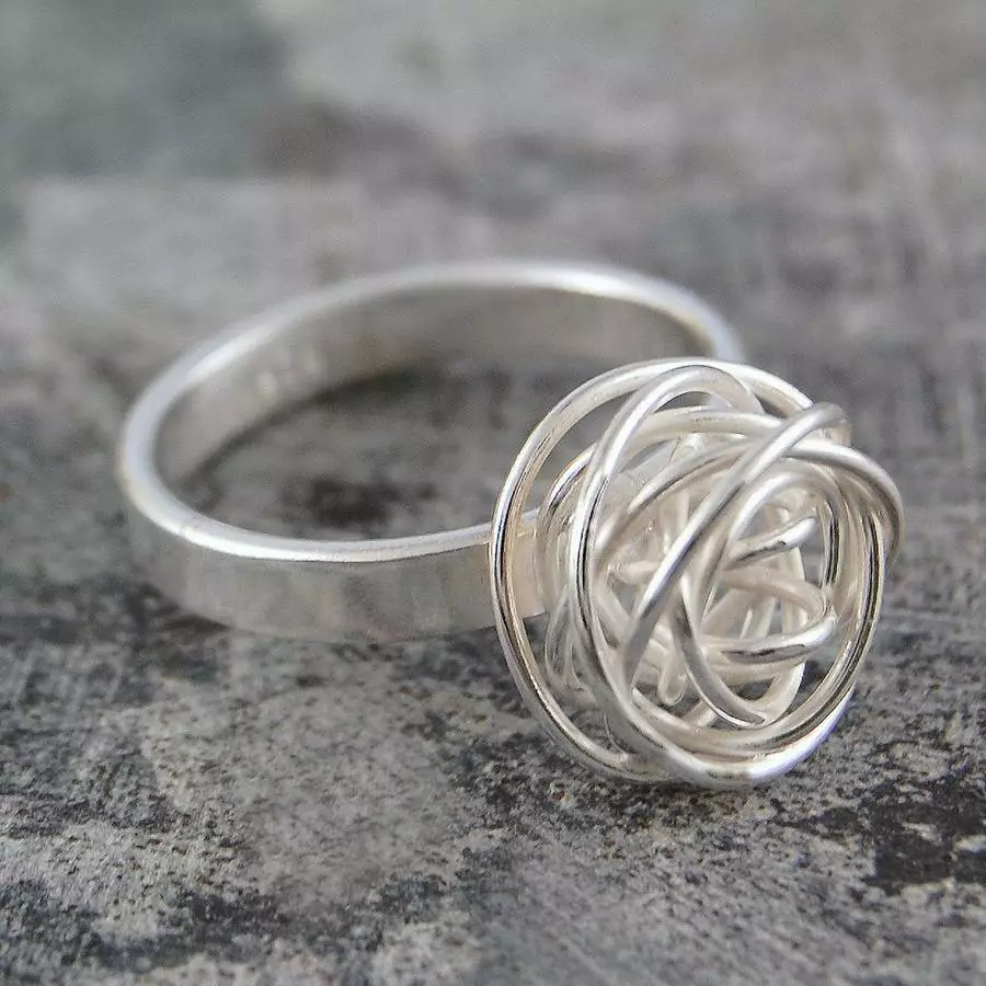 This handmade silver Nest ring by Otis Jaxon is created by fashioning a sterling silver wire wrapped in a seemingly haphazard fashion into a tiny, delicate silver nest. With the look of an abstract vintage rose, this really is a classic gift idea with a modern twist.