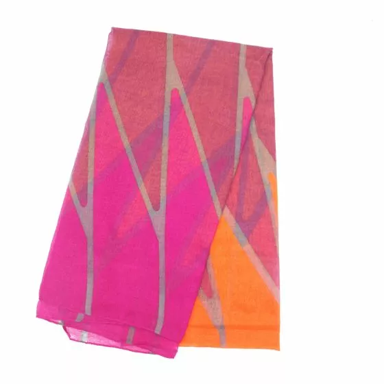 Hot pink and orange scarf featuring a geometrical shape repeat print
