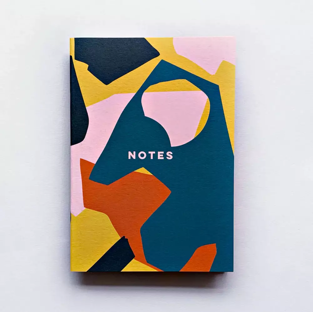 This is a super luxe notebook with a graphic cut out shapes print on the cover.
